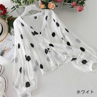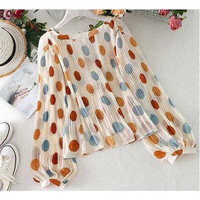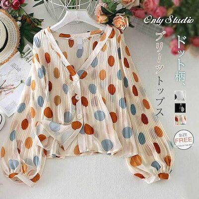 [只今底値&超人気 ]シャツ ブラウス カーディガン 新作 トップス ドット柄 水玉 プリント長袖 プルオーバー Vネック バルーン袖 シフォン プリーツ レディース 春 夏 秋 ゆったりシャツ ブラ