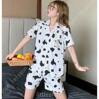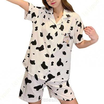 (本日の値下げ/夏の部屋着/5月の)パジャマ レディース 夏 半袖 綿 上下セット ルームウェア 牛柄プリント ゆったり ホームウェア 上下セット かわいい Tシャツ 半袖 ショートパンツ 春夏