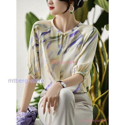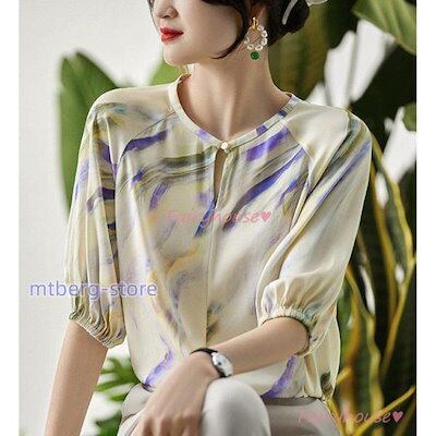 【Kizoo】Tシャツ レディース 40代 夏新作 オシャレブラウス 花柄 Tシャツ 半袖トップス プリント レションTシャツ 大人 通勤 韓国風 30代 50代