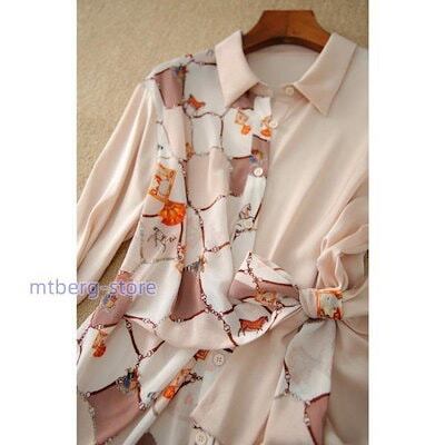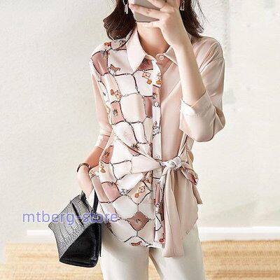 【Kizoo】ブラウス レディース 長袖ブラウス 秋新作 オフィスブラウス プリントリボン オシャレブラウス 襟付きトップス 韓国風 大人 上品 通勤OL ゆったりTシャツ 40代