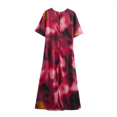 半袖ワンピース ロングワンピース ワンピース フレンチ袖 ロング丈 レディース 花柄ワンピース 春夏 フレンチスリーブ プリント ミモレ丈ワンピース タイト ラウンドネック エレガント Aライトワンピ