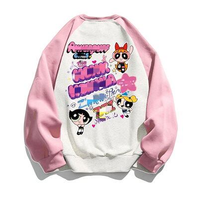 韓国 パワーパフガールズ 可愛い ゆったり トップス カジュアル プリント 男女兼用 ペアルックパーカー/レディースパーカー ルームウェア 長袖パーカージャケット B