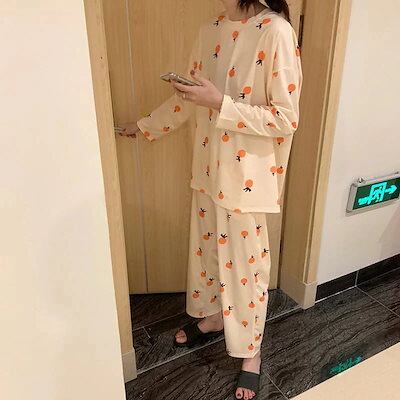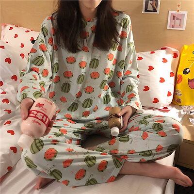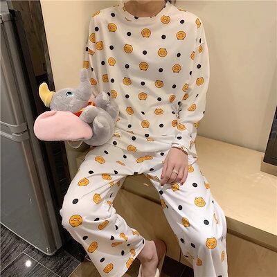 2025 ルームウェア 春 春 パジャマ 韓国ファッション 女性パジャマ レディースパジャマ ナイトウェア 上下セット 寝間着 個性な上着+パンツ パジャマ