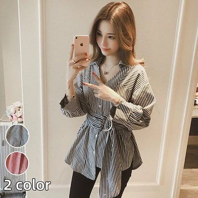 シアーシャツ 秋新作 ブラウス ゆったり ストライプ ブラウス レディース韓国ファッション 百掛け 秋秋長袖トップス 高級感 Vネック着痩せウエスト引き締め長袖ブラウス 流行り30%までに制限