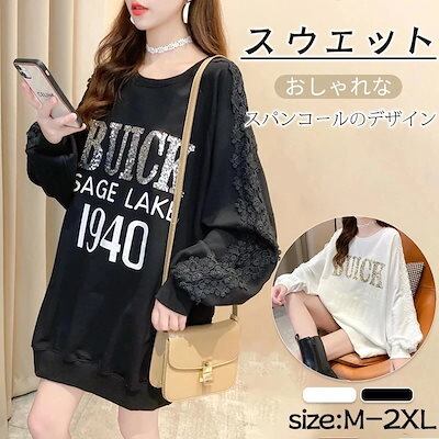 秋スウェット 冬ロンT インナー薄い長袖 tシャツ レディース レーススパンコール韓国ファッション スウェット セミロング 体型カバー 大きいサイズ トップス パーカー レディース 怠惰な風30%まで