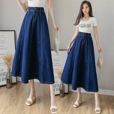 デニムロングスカート ハイウエスト 美脚効果 脚長効果 細見えおしゃれ かわいい 韓国ファッション レディースングスカート