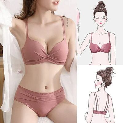 吸水ショーツ 上下セット 響かない!シームレス補正下着夏シームレスブラジャーセットショーツ下着ノンワイヤーギャザリングセクシーデザイン感韓国ファッションブラ人気ブラレディースブラショーツセット