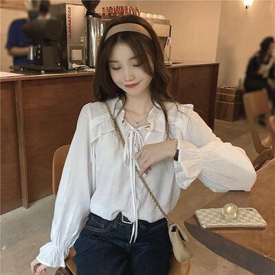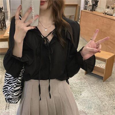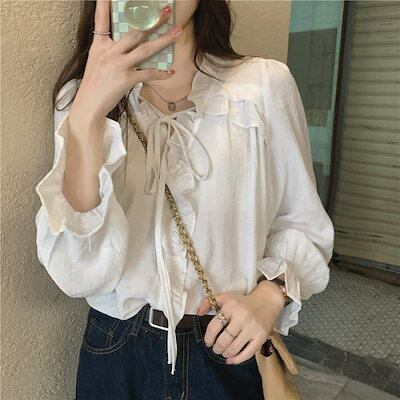 ブラウス プラクス2025新作韓国ファッションレディース 包帯です 無地 シャツ 通勤 気質ウエストを収めたスリムネックシャツ長袖ブラウス