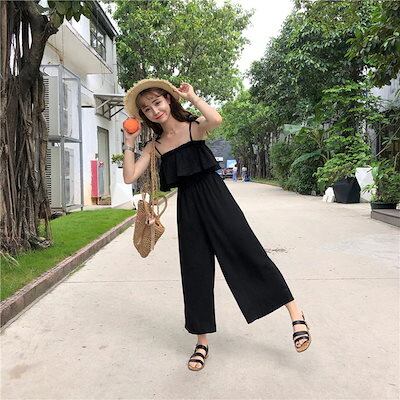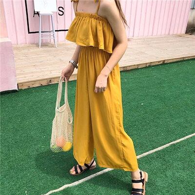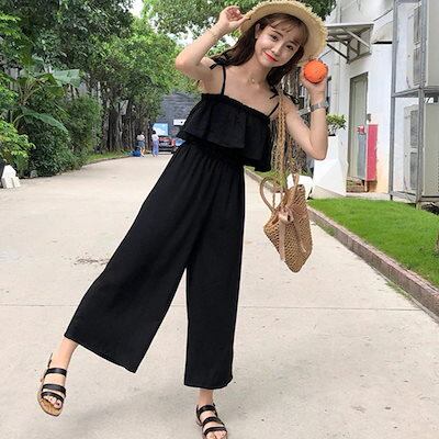 コーデ完成 サロペット サマー カジュアル ゆったり ワイドパンツ 韓国ファッション レディース 春服 着痩せ オーバーオール スラックスパンツ