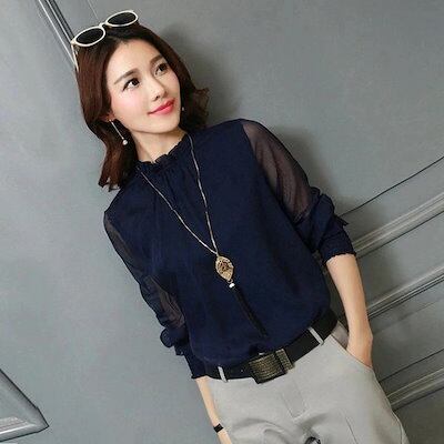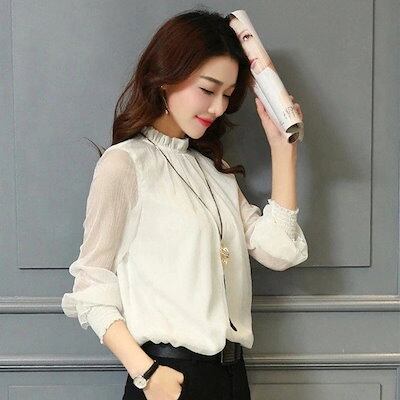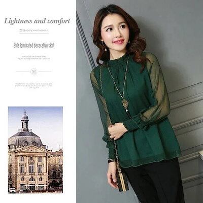 25 シャツ ブラウスレディースシャツシースルー軽やかフリル着?薄手トップスレーススリーブレディースファッション ブラウス 韓国ファッション
