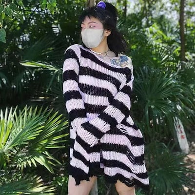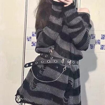 【即納】ボー ニットセーター オーバーサイズ 韓国風ファッション ニット ダメージ加工 レディース セーター 品質良い