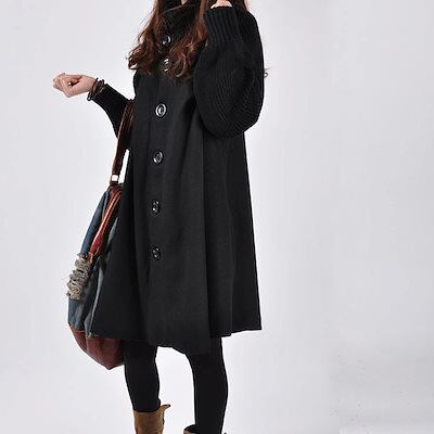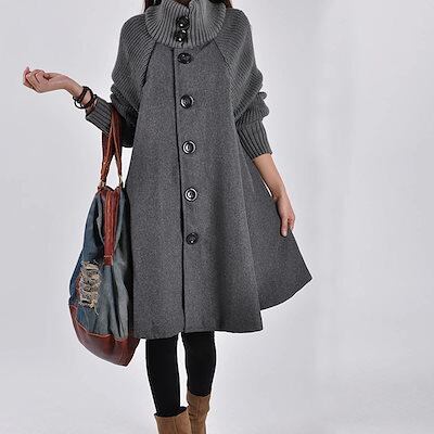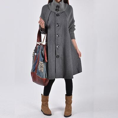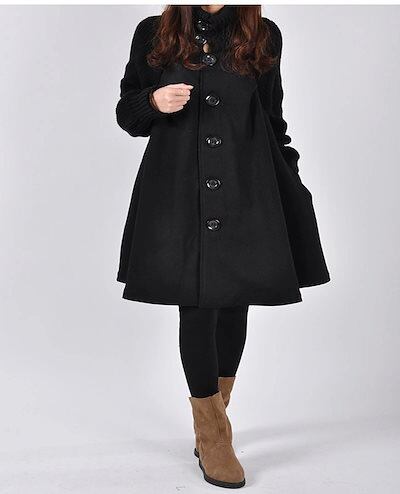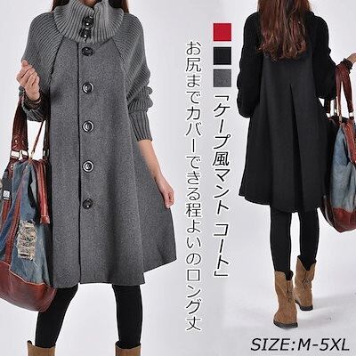 ポンチョ コート ケープコート ハーフコート レディース 秋冬 ポンチョコート チュニック丈 長袖 ロングコート 黒 切り替え ハイネック 異素材 秋 冬 アウター 膝丈 ひざ丈 フレア ケープコート
