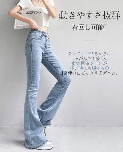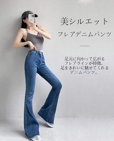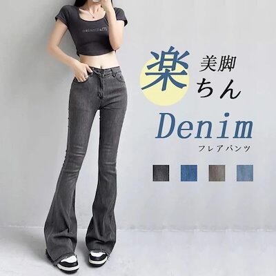 美脚 フレア デニム パンツ レディース きれいめ デニムパンツ ロング タイト 美シルエット フレアパンツ ジーンズ ファション ロングパンツ 長ズボン フェミニン ジーパン スキニーパンツ ストレ
