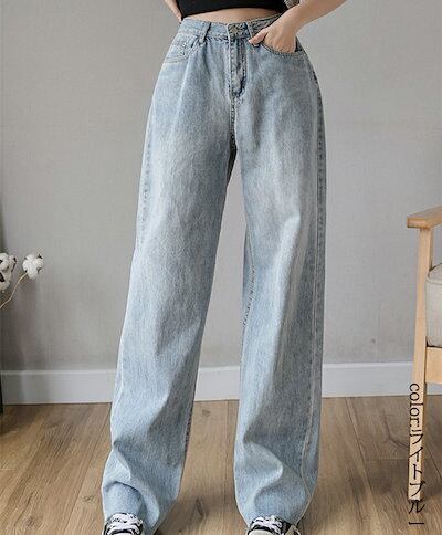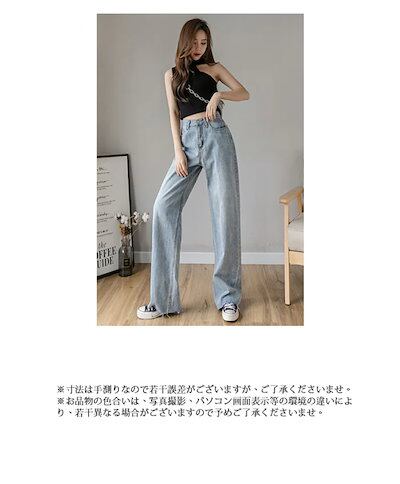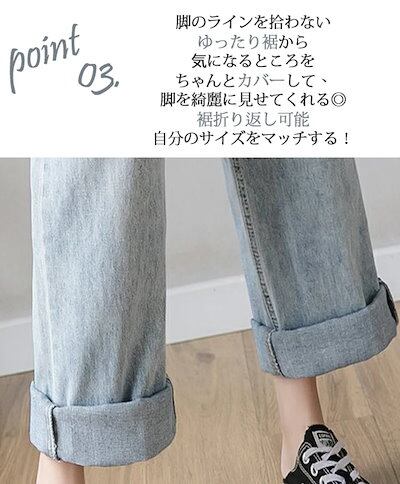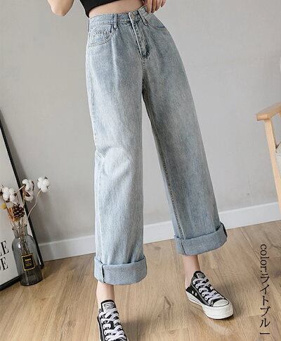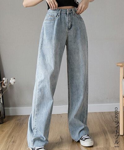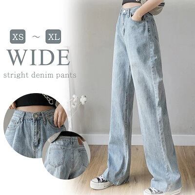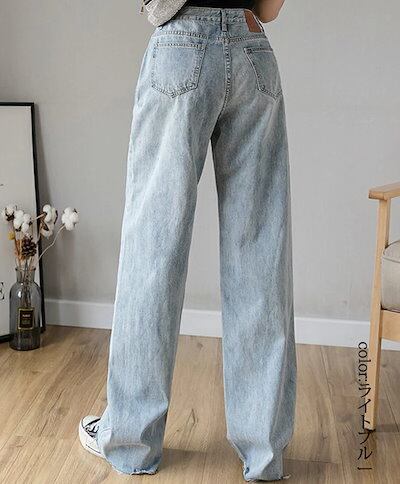 デニムパンツ レディース デニム ワイド ストレート パンツ カジュアル 春秋 ストレートパンツ ロング 脚長 体型カバー ワイドパンツ 女性用 きれいめ 裾デザイン ロングパンツ ハイウェスト ジー