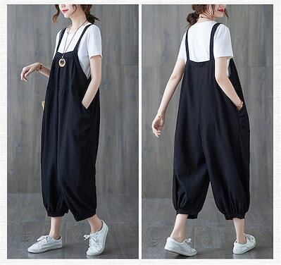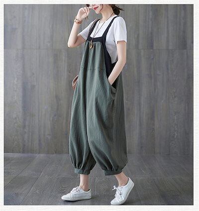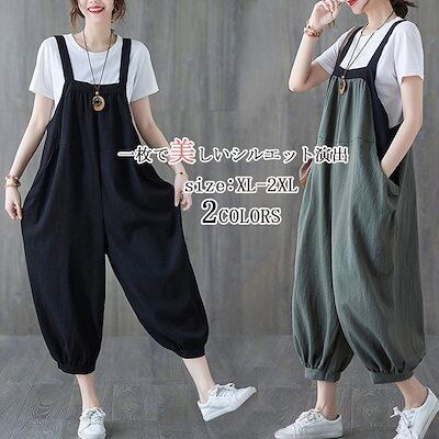 サロペット パンツ 大きいサイズ レディース サルエルパンツ オールインワン ワイドパンツ オーバーオール ロング ゆったり 大きいサイズ ゆるっと ポケット有り サルエルパンツ きれいめ バルーンパ