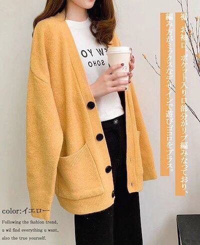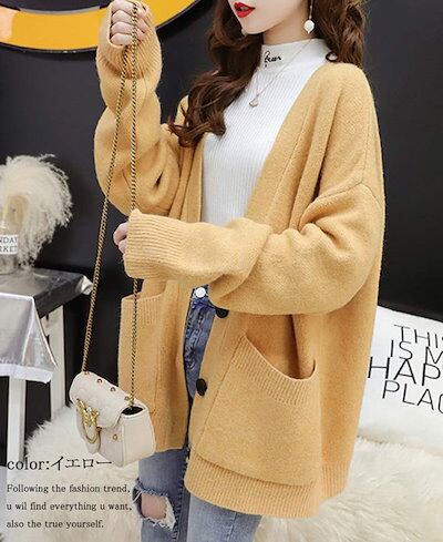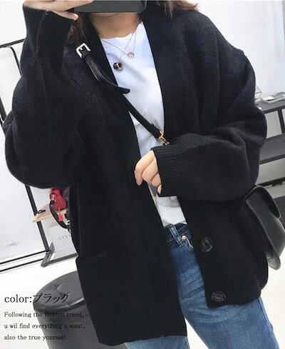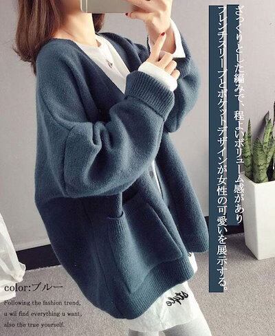 カーディガン レディース ゆったり 秋冬 ニットカーディガン ロング Vネック ボリューム ロングカーディガン 厚手 無地 前開き 羽織 ニットセーター カジュアル ポケット付き ドロップショルダー