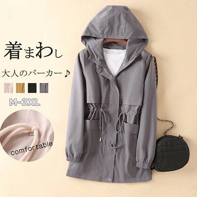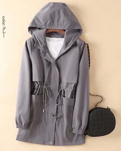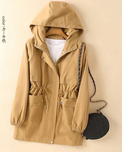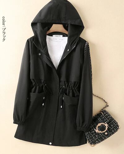 フード付き パーカー レディース 春夏 アウター 40代 30代 女性 マウンテンパーカー ロング コート トップス 長袖 ロングコート 黒 ブルゾン 開襟 フード付きパーカー 防風 ベルト ファス
