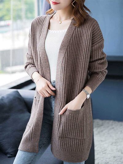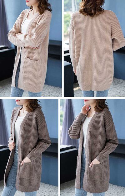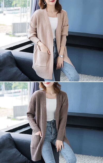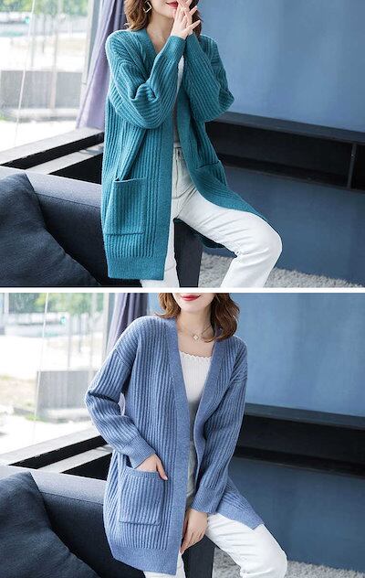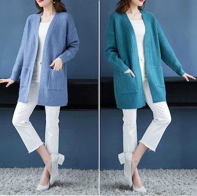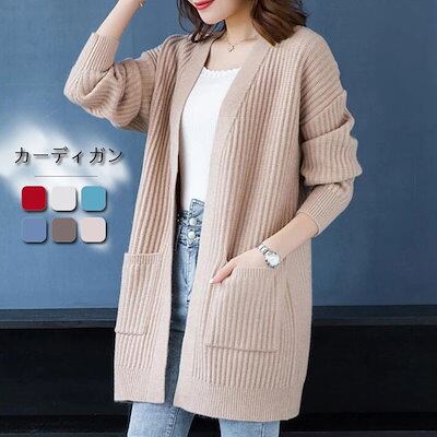 リブニット カーディガン レディース ニットカーディガン カーディガン ニット 羽織 ロングニット トップス セーター 前開き ミドル丈 シンプル コート カジュアル 体型カバー 可愛い 秋冬 お洒落