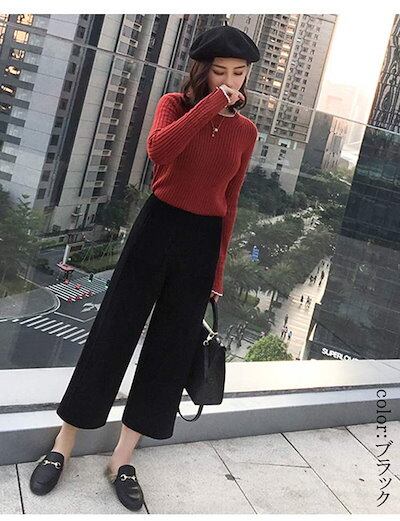 ワイドパンツ レディース 秋冬 ストレートパンツ ワイド 九分丈 ウェストゴム 九分丈パンツ ボリューム 美脚 ポケット付き イージーパンツ カジュアル ふんわり 落ち感 無地 ボトムス ロングパンツ