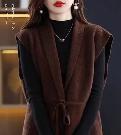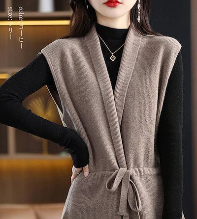 ニットベスト 着こなし レディース 秋 ロングベスト コーデ ベスト ジレ ロング丈 ニット カーディガン 薄手 秋冬 レイヤード ニットカーディガン ノースリーブ 重ね着 ロングジレ Vネック ウェ