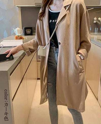 コート レディース 春 トップス 長袖 ファッション アウター ライトアウター 折り襟 ポケット ジャケット ゆったり カジュアル ロング丈 抜け感 ミリタリージャケット 春秋 カッコイイ ロングアウ