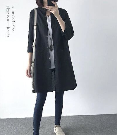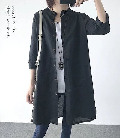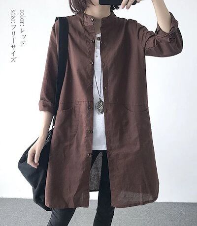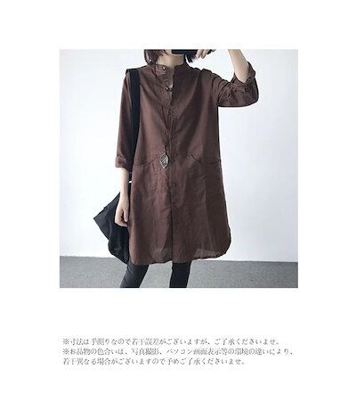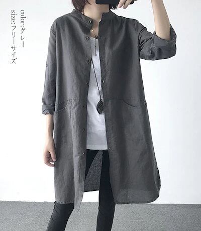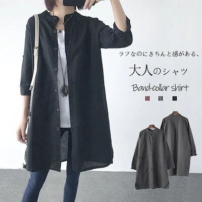 ロングシャツ レディース 春夏 秋物 長袖チュニック バンドカラー シャツ チュニック スタンドカラー 立ち襟 ロング 開襟 長袖 綿麻風 無地 シャツ 羽織 羽織りもの ボタン チュニックシャツ ト