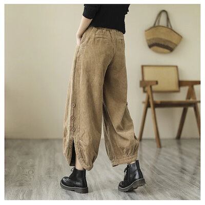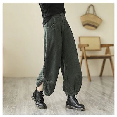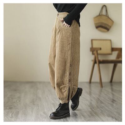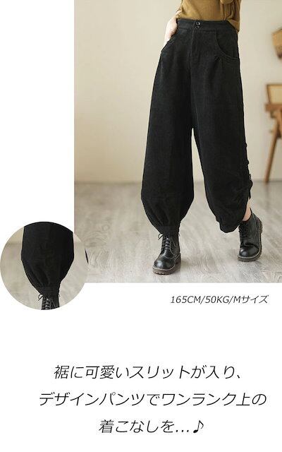 コーデュロイ パンツ ハイウエスト ワイド ボトムス レディース 秋 冬 ウエストゴム コクーン ワイドパンツ ロング コクーンパンツ ポケット付き 美脚 ゆったり かわいい 9分丈 大きいサイズ 森
