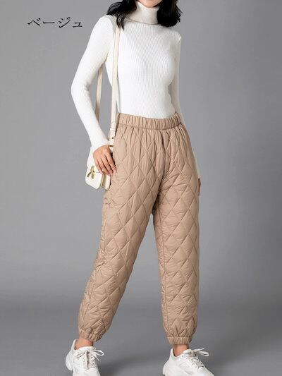 中綿 パンツ レディース 部屋着 防寒 テーパードパンツ ガウチョパンツ レディース ロングパンツ キルティング ゆったり ボトムス 無地 ウエストゴム 中綿入り 大きいサイズ 体型カバー ポケット付