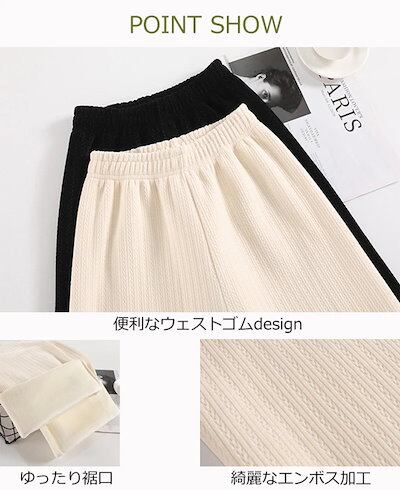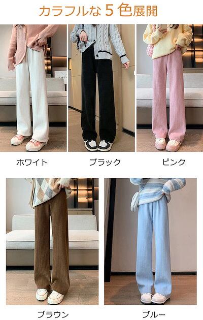裏起毛 パンツ レディース きれいめ ワイドパンツ 秋冬 ハイウェスト ゆったり ロングパンツ ウェストゴム 暖かい 女の子 裏起毛パンツ 保温 あったか ストレートパンツ ワイド ボア エンボス カ