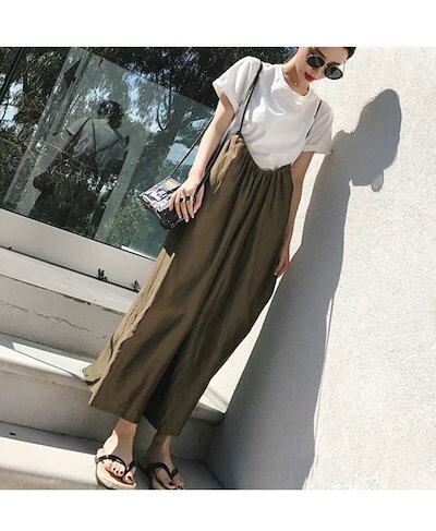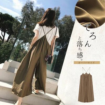 オールインワン サロペット パンツ きれいめ ワイドパンツ レディース 大きいサイズ ゆったり 体型カバー ガウチョパンツ ロング丈 夏 サロペットパンツ オーバーオール ふんわり ボリューム ひんや
