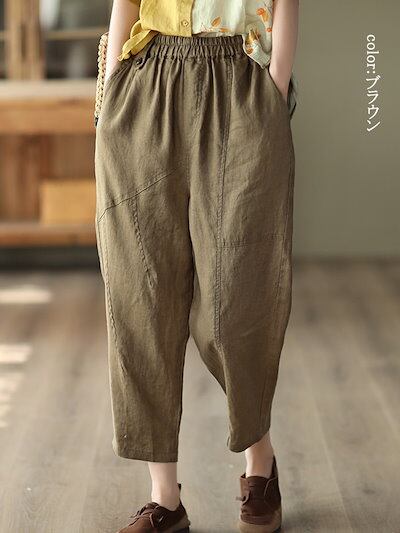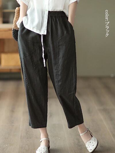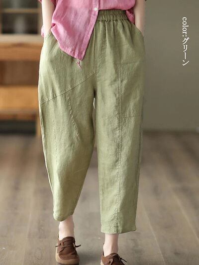 テーパードパンツ レディース 春秋 イージーパンツ 春 大きいサイズ 着痩せ ロングパンツ ウエストゴム ポケット ボトムス 9分丈 無地 タック 秋 カジュアル シンプル 長ズボン ギャザー オーバ