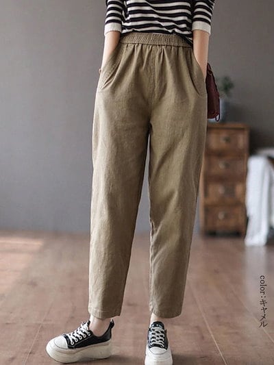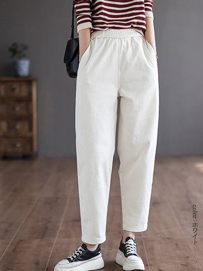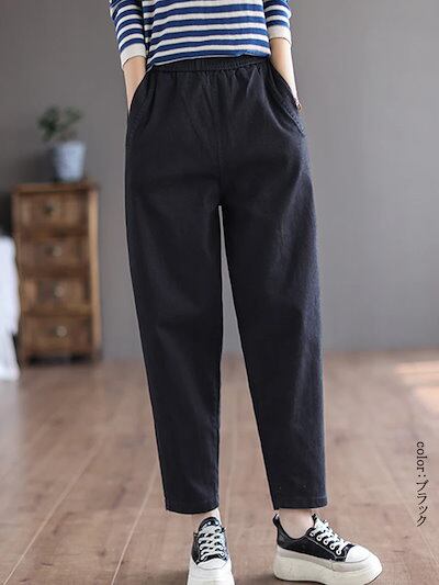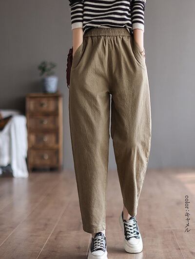 テーパードパンツ レディース 春秋 イージーパンツ 春 大きいサイズ 着痩せ ロングパンツ ウエストゴム ポケット ボトムス マキシ丈 無地 タック 秋 カジュアル シンプル 長ズボン オーバーサイズ