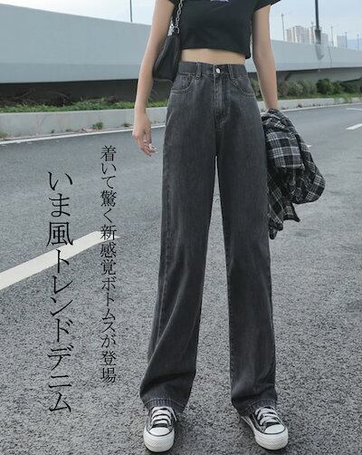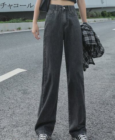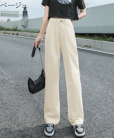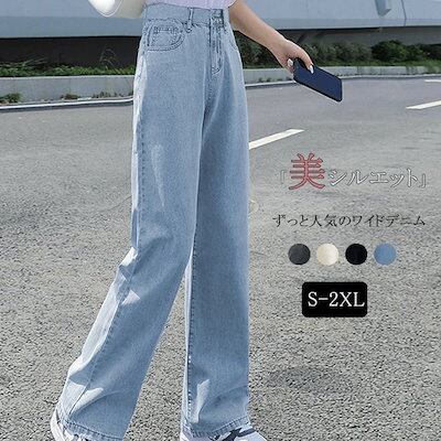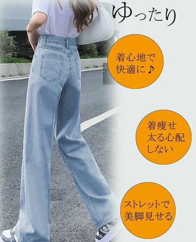 デニムパンツ レディース 大きいサイズ 春秋 ストレートパンツ 女の子 ハイウエスト 体型カバー ワイドパンツ 秋 ロング ポケットあり ロングパンツ ストレート ゆったり パンツ デニム ポケット付