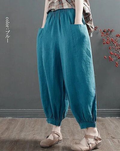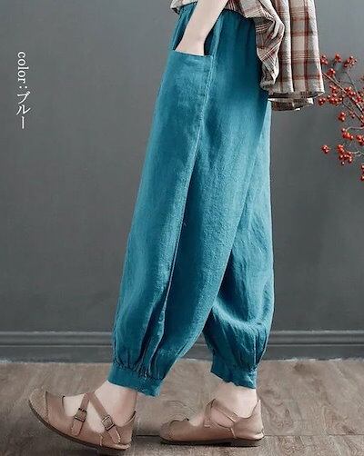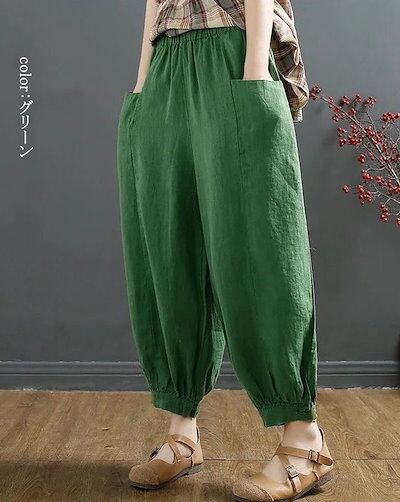 バルーンパンツ レディース 春秋 パンツ ロング 綿麻パンツ ポケット ウェストゴム 穿きやすい イージーパンツ ゆったり 体型カバー ギャザー ロングパンツ 着痩せ 大きいサイズ バルーン パンツ