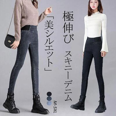デニムパンツ デニム スキニーパンツ レディース 大きいサイズ ゆったり パンツ ロング丈 春 秋 ロングパンツ ウェストゴム カジュアル 体型カバー ボトムス お洒落 お出かけ キレイ 美脚 大人
