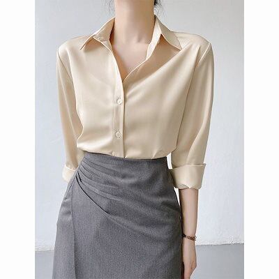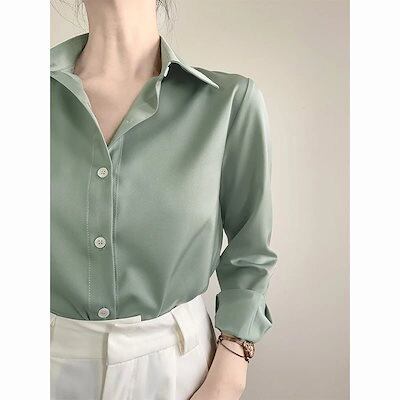 2025 春 夏 シャツ レディース ブラウス グリーン 長袖シャツ 通勤 シフォン トップス 韓国ファッション