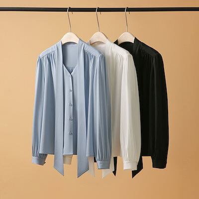 2025 春 夏 シャツ レディース ブラウス リボン付き 長袖 トップス 韓国ファッション
