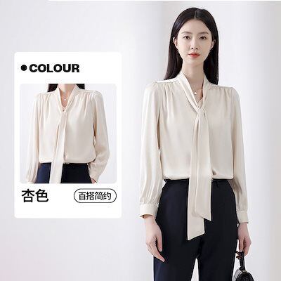 2025 春 夏 シャツ レディース ブラウス フォーマル 長袖 リボン 通勤 オフィス シフォン トップス 韓国ファッション