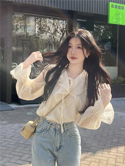 2025 春 夏 シャツ レディース ブラウス 新作 シャツ 長袖 トップス 韓国ファッション