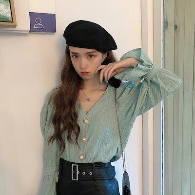 2025 春 夏 シャツ レディース ブラウス Vネック 新作 トップス 韓国ファッション