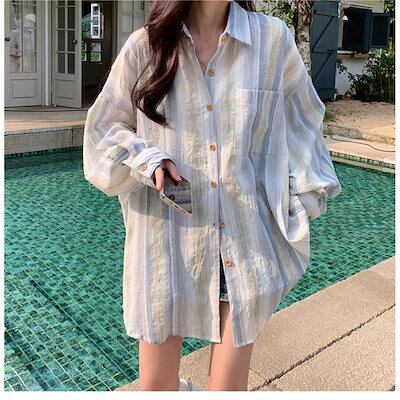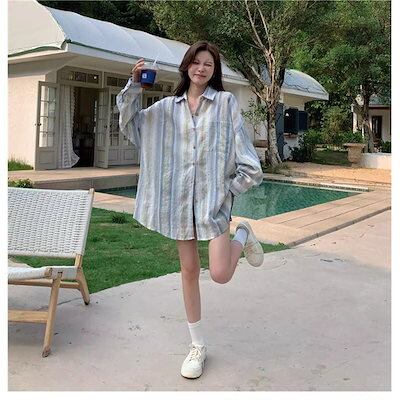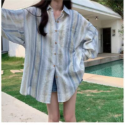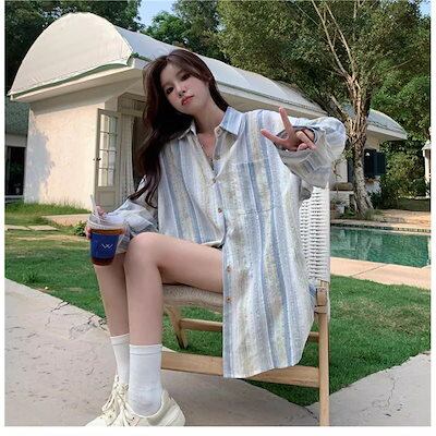 2025 春 夏 シャツ レディース ブラウス ストライプシャツ シャツ 長袖 トップス 韓国ファッション