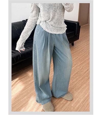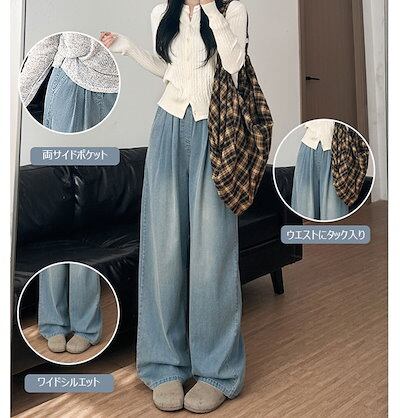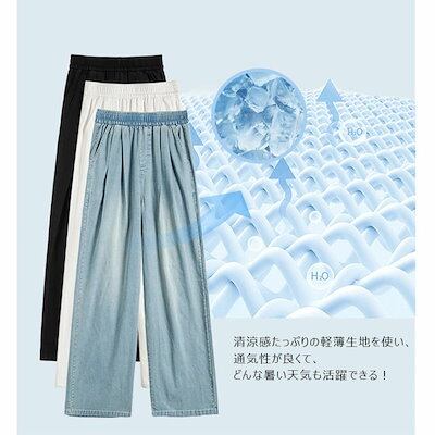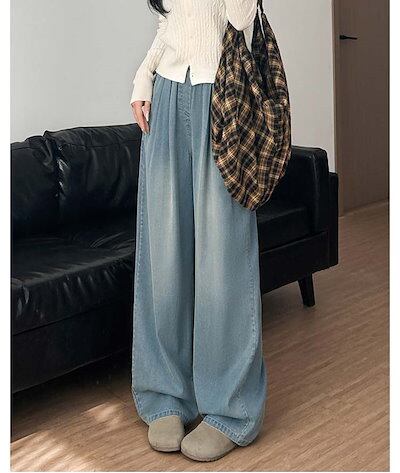 デニムパンツ レディース ウエストゴム レディース デニム 春夏 ワイドパンツ ハイウエスト パンツ ズボン ボトムス ロングズボン ゆったり ワイド ストレート カジュアル ポケット付き きれいめ