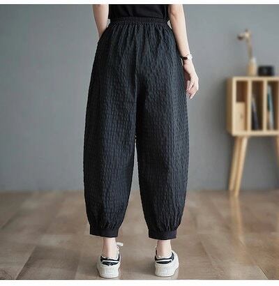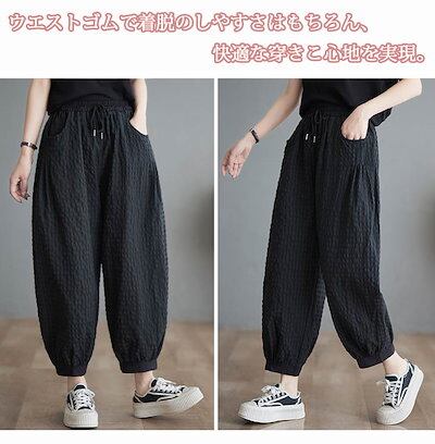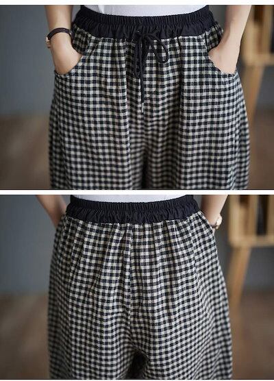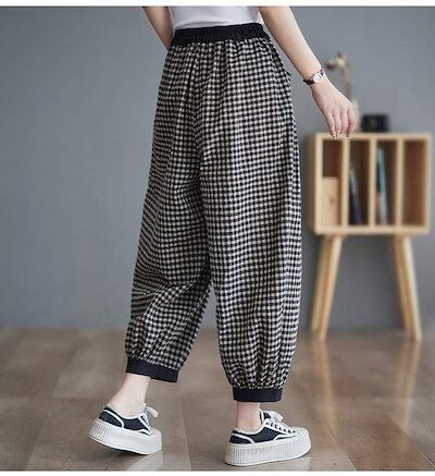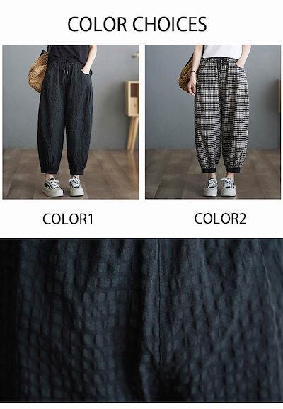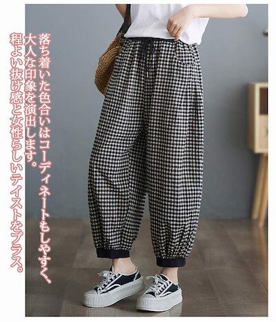 バルーンパンツ レディース チェック サルエルパンツ ウエストゴム ポケット付き ボトムス リボン タック ハイウエスト ワイドパンツ ギャザー ゆったり 体型カバー カジュアルパンツ オフィス チェ