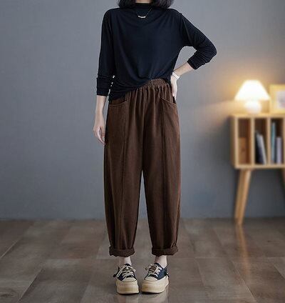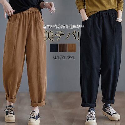 パンツ レディース ボトムス 秋 冬 テーパードパンツ サルエルパンツ きれいめ 大きいサイズ ロングパンツ ハロンパンツ ゆったり パンツ テーパード 美脚 綿混 ハイウエスト ウエストゴム ポケッ
