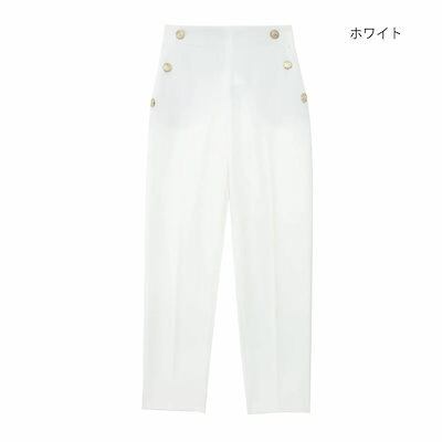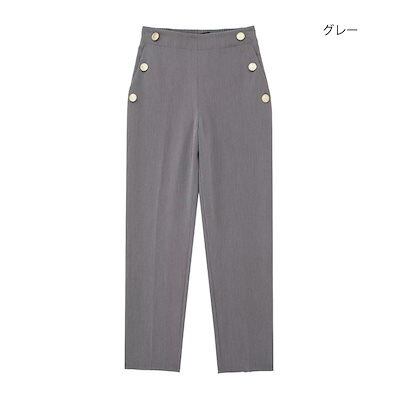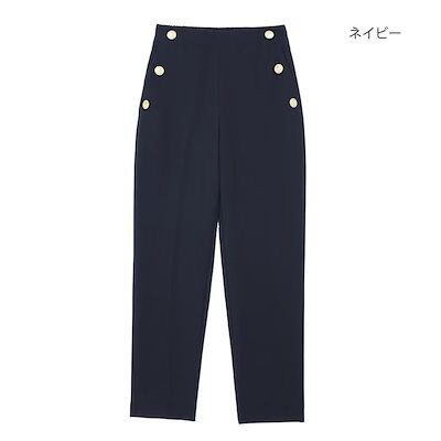 パンツ レディース きれいめ テーパードパンツ スティックパンツ 春夏 カラーパンツ ロングパンツ ズボン 長ズボン パンツ テーパード ロング ハイウエスト ウエストゴム ゴールドボタン フォーマル