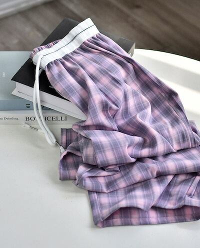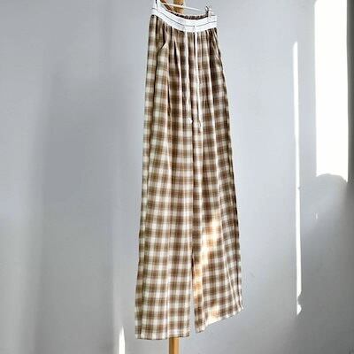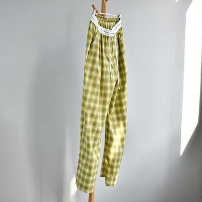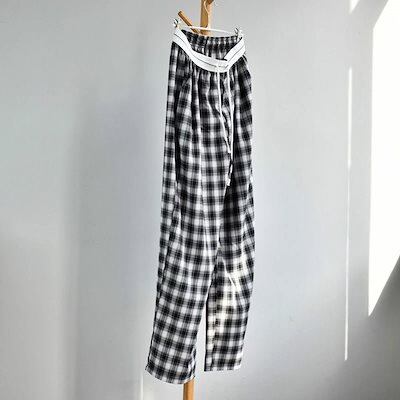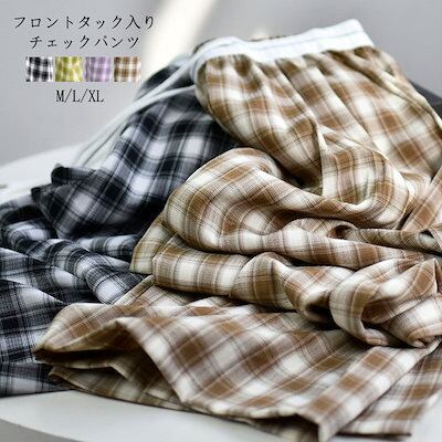 チェックパンツ レディース ワイドパンツ チェック柄 パンツ ボトムス ストレートパンツ カジュアルパンツ タック入り ウエストゴム ハイウエスト ズボン ロング ひも付き カジュアル ゆったり きれ