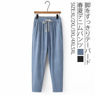 デニムパンツ ウエストゴム 春 夏 テーパードパンツ レディース デニム テーパード パンツ ハイウエスト きれいめ ボトムス ジーンズ ロング丈 長ズボン テンセルデニム 薄手 涼しい ゆったり 大