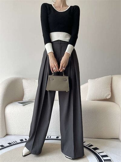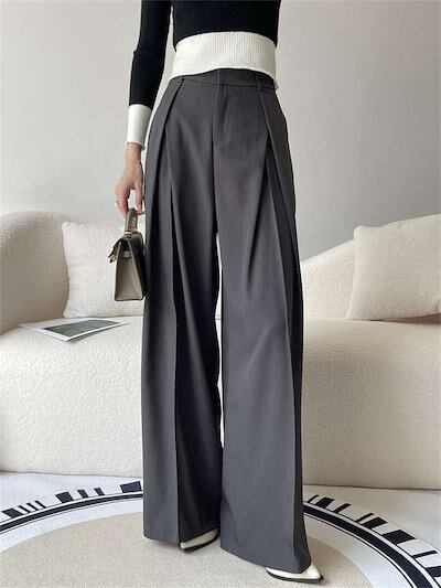 パンツ ワイドパンツ タックパンツ レディース 春 夏 秋 冬 ボトムス タック フレア ワイド ロング スーツパンツ ロングパンツ ガチョウパンツ ハイウエスト ポケット付き ゆったり シンプル 洗