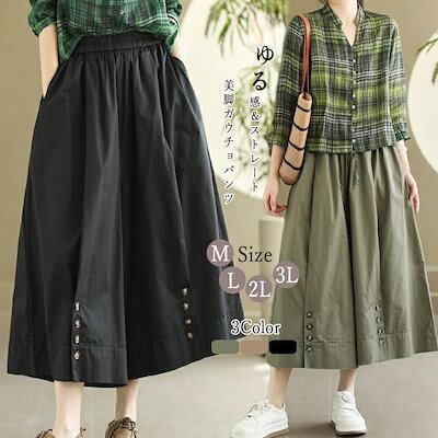ワイドパンツ ガウチョパンツ チノパンツ ワイドベイカーパンツ ワイドパンツ ワイドチノ ハイウエスト レディース パンツ ボトムス 8分丈 春 夏 M L 2L 3L