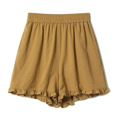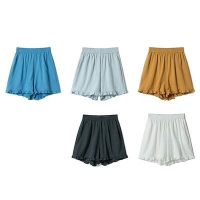 ショートパンツ レディース 夏 短パンツ ワイドパンツ ボトムス ハイウエスト 裾フリル ショート丈 キレイめ ウエストゴム カジュアル シンプル リラックス 無地 ナチュラル 涼しい 薄手 お洒落